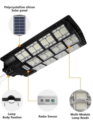 Powerful 800 lumen solar floodlight, offering 30% brightness at night, switching to 100% when humans are detected.